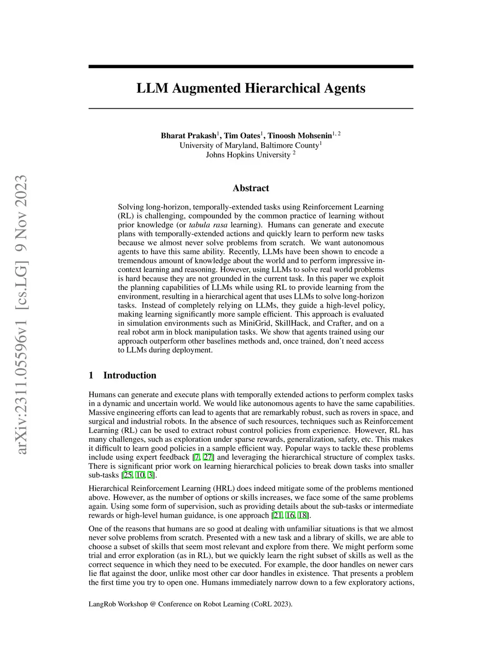 LLM Augmented Hierarchical Agents