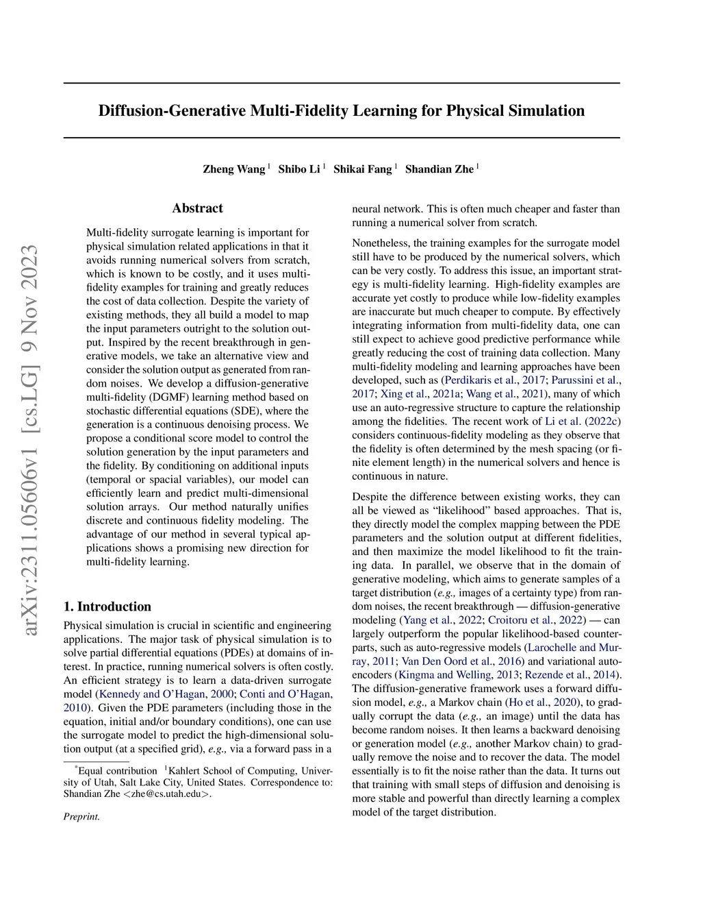 Diffusion-Generative Multi-Fidelity Learning for Physical Simulation