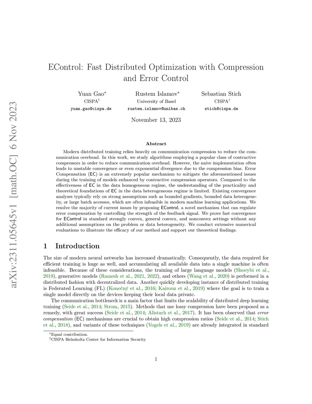 Modern distributed training relies heavily on communication compression to reduce the communication overhead. In this work, we study algorithms employing a popular class of contractive compressors in order to reduce communication overhead. However, the naive implementation often leads to unstable convergence or even exponential divergence due to the compression bias. Error Compensation (EC) is an extremely popular mechanism to mitigate the aforementioned issues during the training of models enhanced by contractive compression operators. Compared to the effectiveness of EC in the data homogeneous regime, the understanding of the practicality and theoretical foundations of EC in the data heterogeneous regime is limited. Existing convergence analyses typically rely on strong assumptions such as bounded gradients, bounded data heterogeneity, or large batch accesses, which are often infeasible in modern machine learning applications. We resolve the majority of current issues by proposing EControl, a novel mechanism that can regulate error compensation by controlling the strength of the feedback signal. We prove fast convergence for EControl in standard strongly convex, general convex, and nonconvex settings without any additional assumptions on the problem or data heterogeneity. We conduct extensive numerical evaluations to illustrate the efficacy of our method and support our theoretical findings.