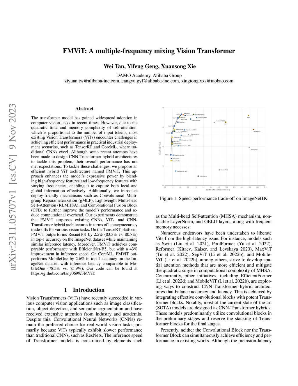FMViT: A multiple-frequency mixing Vision Transformer