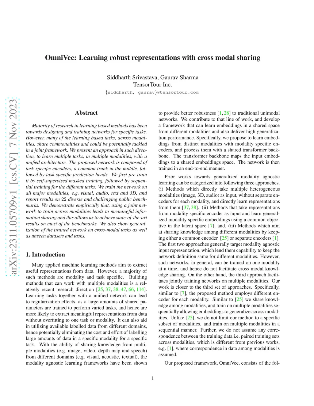 OmniVec: Learning robust representations with cross modal sharing