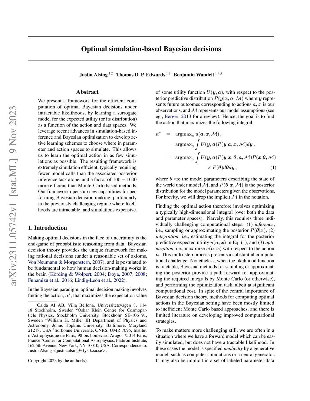 Optimal simulation-based Bayesian decisions