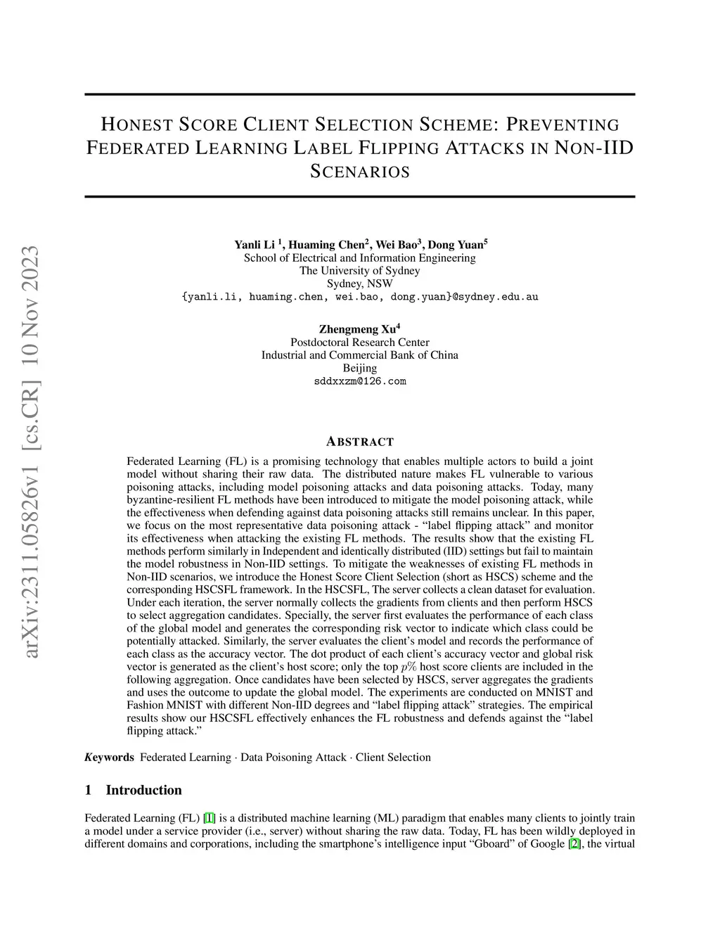 Honest Score Client Selection Scheme: Preventing Federated Learning