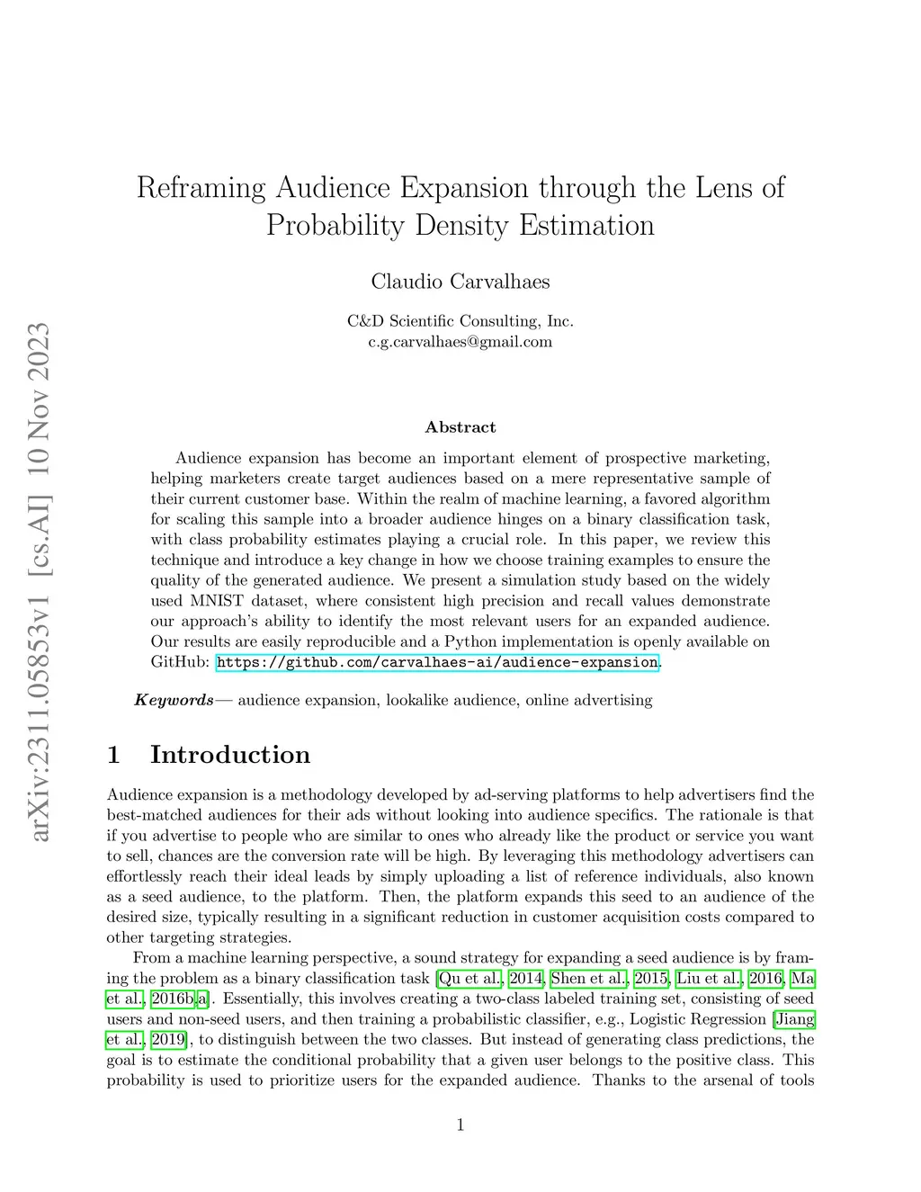 Audience expansion has become an important element of prospective marketing, helping marketers create target audiences based on a mere representative sample of their current customer base. Within the realm of machine learning, a favored algorithm for scaling this sample into a broader audience hinges on a binary classification task, with class probability estimates playing a crucial role. In this paper, we review this technique and introduce a key change in how we choose training examples to ensure the quality of the generated audience. We present a simulation study based on the widely used MNIST dataset, where consistent high precision and recall values demonstrate our approach's ability to identify the most relevant users for an expanded audience. Our results are easily reproducible and a Python implementation is openly available on GitHub: \url{https://github.com/carvalhaes-ai/audience-expansion}