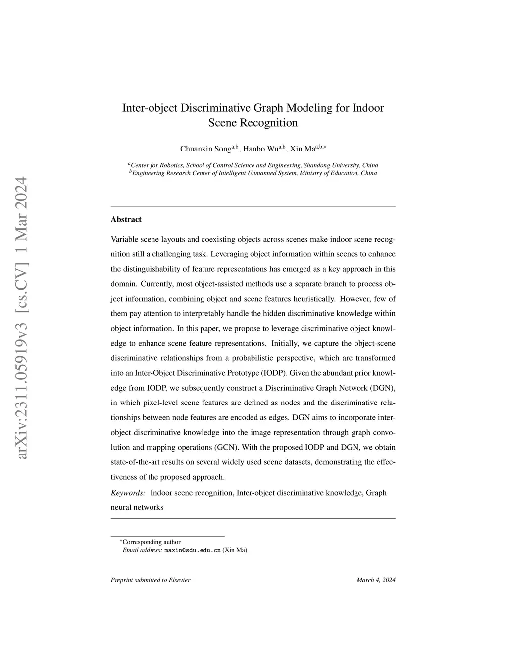 Inter-object Discriminative Graph Modeling for Indoor Scene Recognition