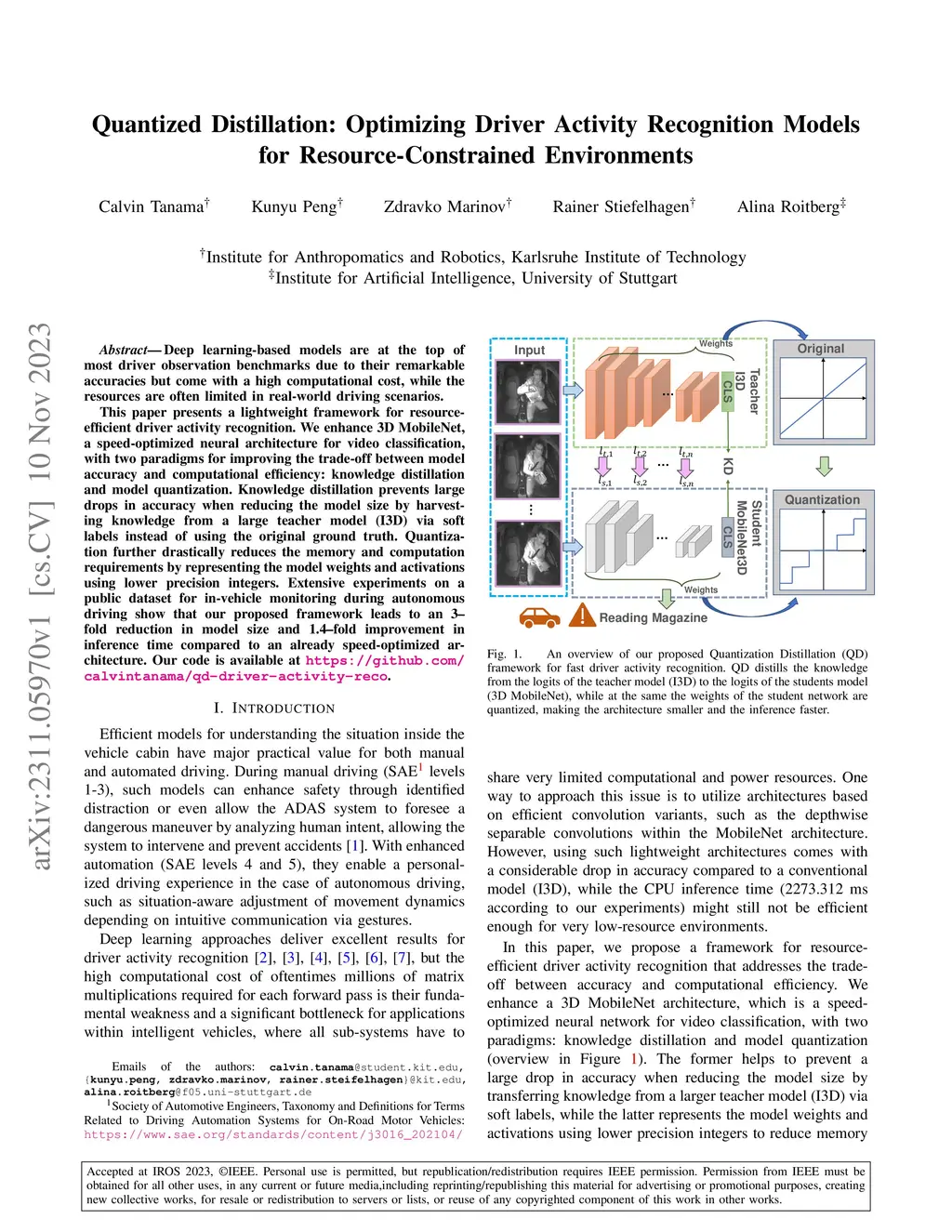 Quantized Distillation: Optimizing Driver Activity Recognition Models