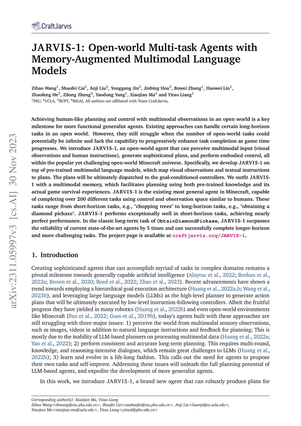 JARVIS-1: Open-World Multi-task Agents with Memory-Augmented Multimodal