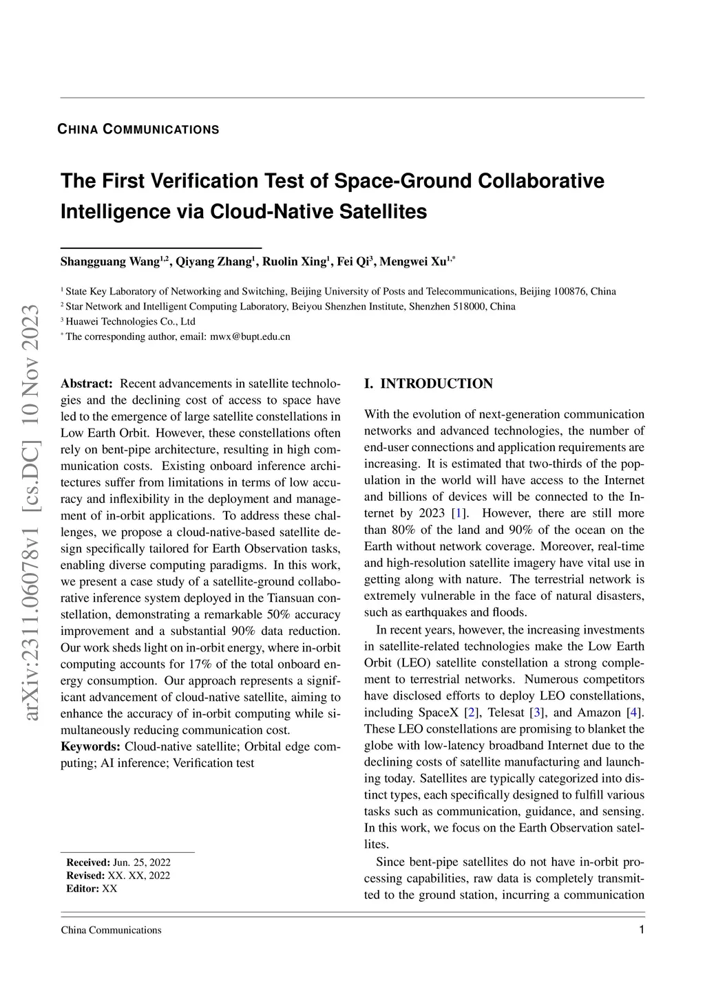 The First Verification Test of Space-Ground Collaborative Intelligence