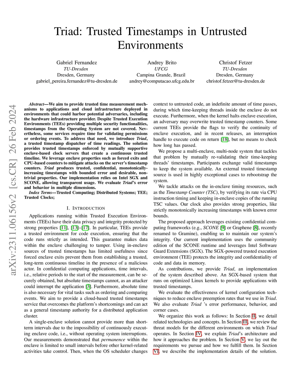 Triad: Trusted Timestamps in Untrusted Environments
