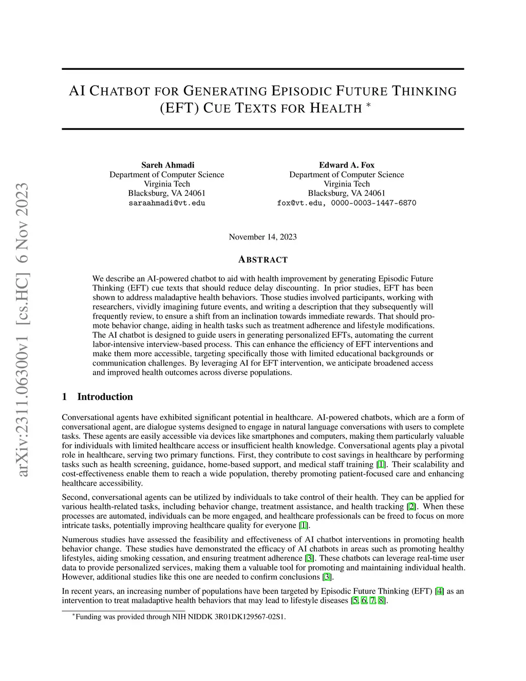 We describe an AI-powered chatbot to aid with health improvement by generating Episodic Future Thinking (EFT) cue texts that should reduce delay discounting. In prior studies, EFT has been shown to address maladaptive health behaviors. Those studies involved participants, working with researchers, vividly imagining future events, and writing a description that they subsequently will frequently review, to ensure a shift from an inclination towards immediate rewards. That should promote behavior change, aiding in health tasks such as treatment adherence and lifestyle modifications. The AI chatbot is designed to guide users in generating personalized EFTs, automating the current labor-intensive interview-based process. This can enhance the efficiency of EFT interventions and make them more accessible, targeting specifically those with limited educational backgrounds or communication challenges. By leveraging AI for EFT intervention, we anticipate broadened access and improved health outcomes across diverse populations