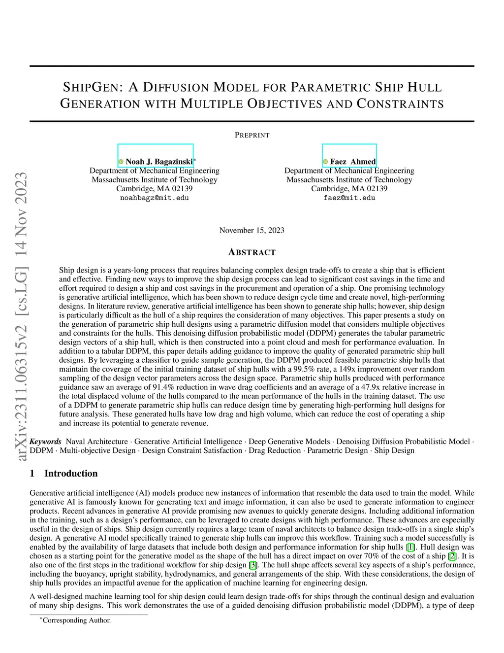 ShipGen: A Diffusion Model for Parametric Ship Hull Generation with