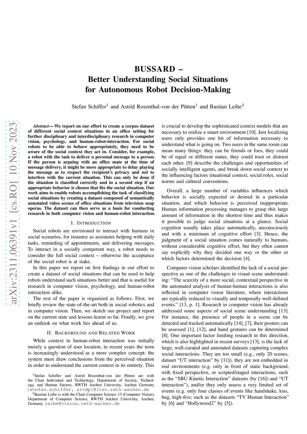 BUSSARD -- Better Understanding Social Situations for Autonomous Robot