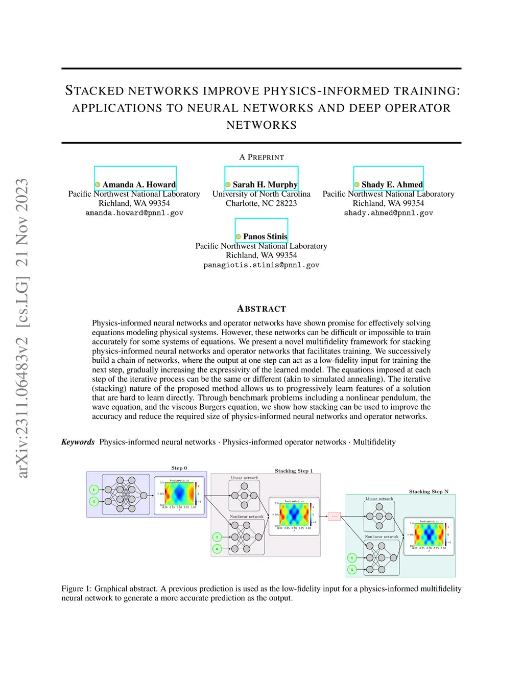 Stacked networks improve physics-informed training: applications to