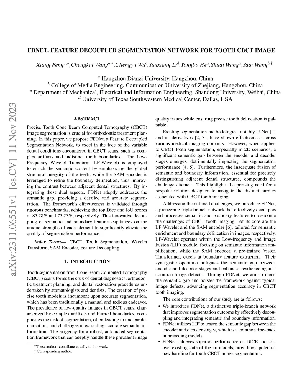 FDNet: Feature Decoupled Segmentation Network for Tooth CBCT Image