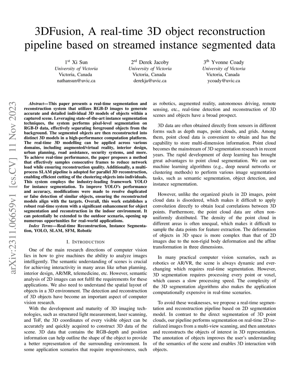 3DFusion, A real-time 3D object reconstruction pipeline based on