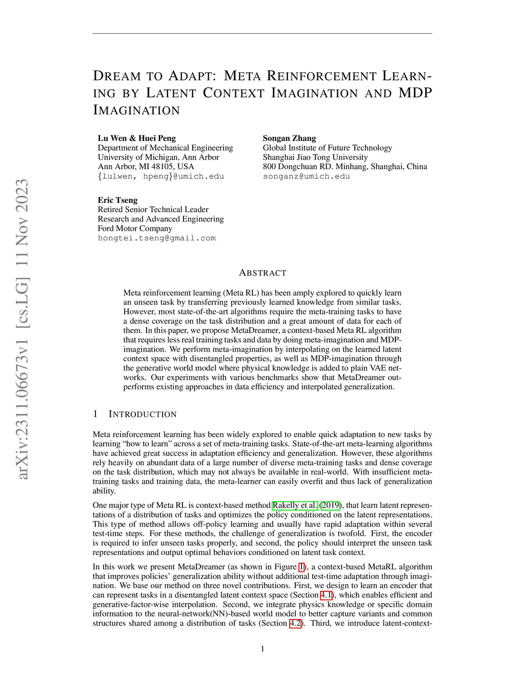 Dream to Adapt: Meta Reinforcement Learning by Latent Context