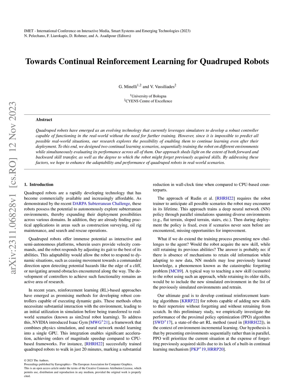 Quadruped robots have emerged as an evolving technology that currently leverages simulators to develop a robust controller capable of functioning in the real-world without the need for further training. However, since it is impossible to predict all possible real-world situations, our research explores the possibility of enabling them to continue learning even after their deployment. To this end, we designed two continual learning scenarios, sequentially training the robot on different environments while simultaneously evaluating its performance across all of them. Our approach sheds light on the extent of both forward and backward skill transfer, as well as the degree to which the robot might forget previously acquired skills. By addressing these factors, we hope to enhance the adaptability and performance of quadruped robots in real-world scenarios.