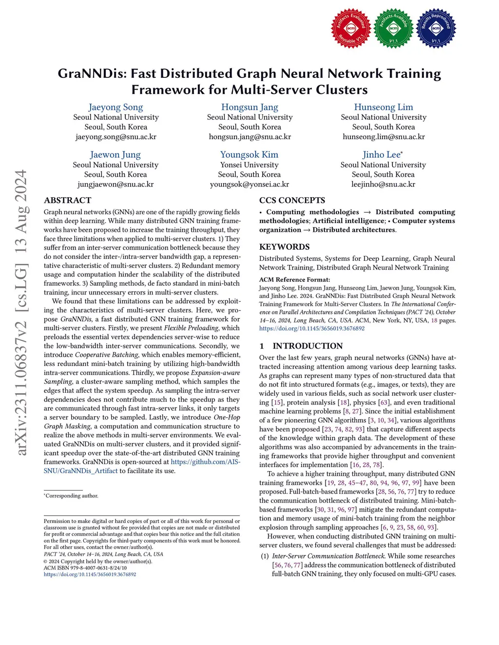 Graph neural networks (GNNs) are one of the most rapidly growing fields within deep learning. According to the growth in the dataset and the model size used for GNNs, an important problem is that it becomes nearly impossible to keep the whole network on GPU memory. Among numerous attempts, distributed training is one popular approach to address the problem. However, due to the nature of GNNs, existing distributed approaches suffer from poor scalability, mainly due to the slow external server communications. In this paper, we propose GraNNDis, an efficient distributed GNN training framework for training GNNs on large graphs and deep layers. GraNNDis introduces three new techniques. First, shared preloading provides a training structure for a cluster of multi-GPU servers. We suggest server-wise preloading of essential vertex dependencies to reduce the low-bandwidth external server communications. Second, we present expansion-aware sampling. Because shared preloading alone has limitations because of the neighbor explosion, expansion-aware sampling reduces vertex dependencies that span across server boundaries. Third, we propose cooperative batching to create a unified framework for full-graph and minibatch training. It significantly reduces redundant memory usage in mini-batch training. From this, GraNNDis enables a reasonable trade-off between full-graph and mini-batch training through unification especially when the entire graph does not fit into the GPU memory. With experiments conducted on a multi-server/multi-GPU cluster, we show that GraNNDis provides superior speedup over the state-of-the-art distributed GNN training frameworks.