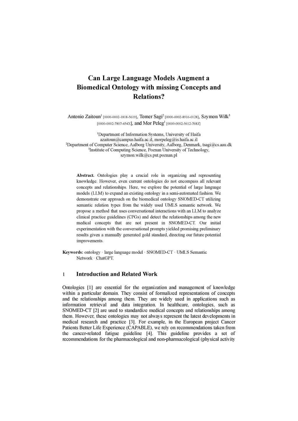 Ontologies play a crucial role in organizing and representing knowledge. However, even current ontologies do not encompass all relevant concepts and relationships. Here, we explore the potential of large language models (LLM) to expand an existing ontology in a semi-automated fashion. We demonstrate our approach on the biomedical ontology SNOMED-CT utilizing semantic relation types from the widely used UMLS semantic network. We propose a method that uses conversational interactions with an LLM to analyze clinical practice guidelines (CPGs) and detect the relationships among the new medical concepts that are not present in SNOMED-CT. Our initial experimentation with the conversational prompts yielded promising preliminary results given a manually generated gold standard, directing our future potential improvements.