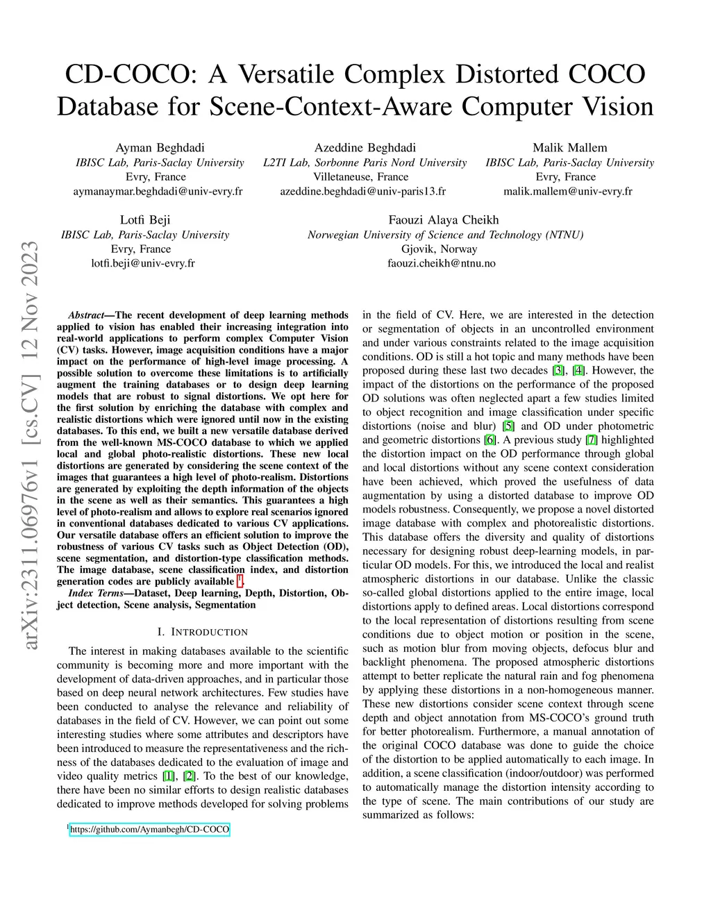 CD-COCO: A Versatile Complex Distorted COCO Database for