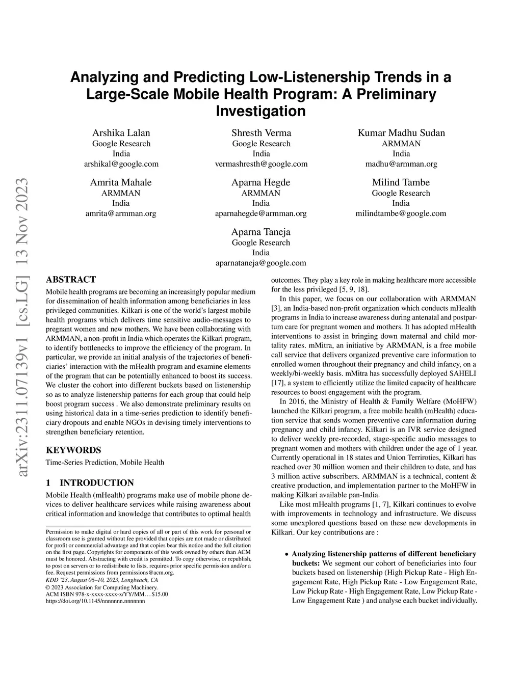 Mobile health programs are becoming an increasingly popular medium for dissemination of health information among beneficiaries in less privileged communities. Kilkari is one of the world's largest mobile health programs which delivers time sensitive audio-messages to pregnant women and new mothers. We have been collaborating with ARMMAN, a non-profit in India which operates the Kilkari program, to identify bottlenecks to improve the efficiency of the program. In particular, we provide an initial analysis of the trajectories of beneficiaries' interaction with the mHealth program and examine elements of the program that can be potentially enhanced to boost its success. We cluster the cohort into different buckets based on listenership so as to analyze listenership patterns for each group that could help boost program success. We also demonstrate preliminary results on using historical data in a time-series prediction to identify beneficiary dropouts and enable NGOs in devising timely interventions to strengthen beneficiary retention.