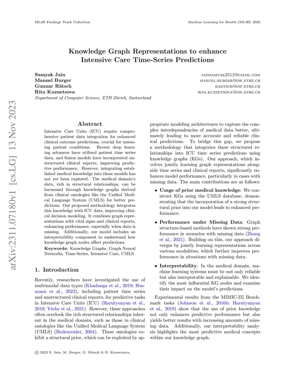 Knowledge Graph Representations to enhance Intensive Care Time-Series
