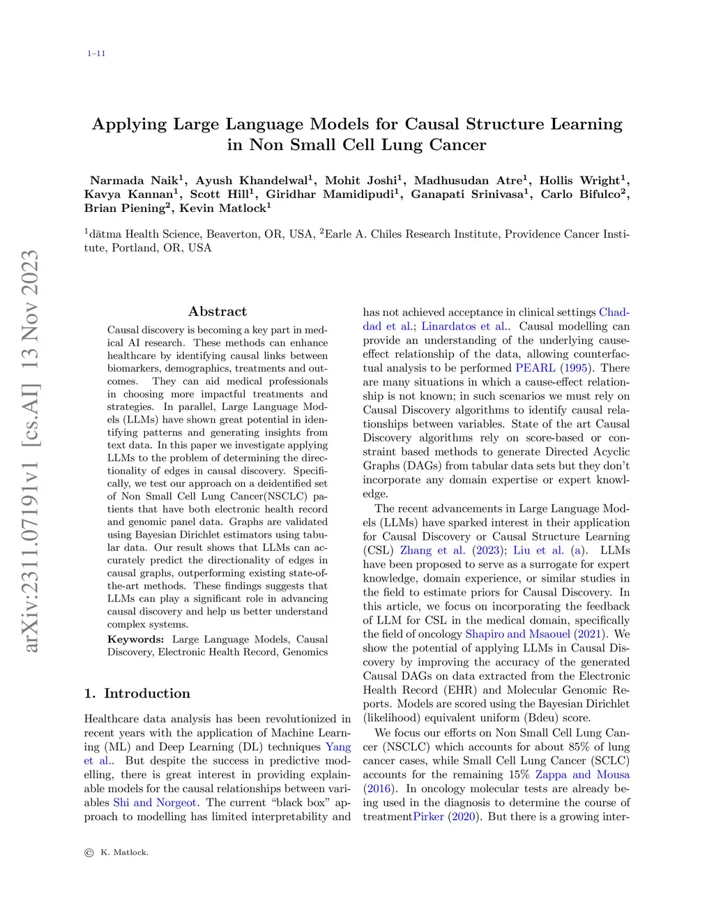 Causal discovery is becoming a key part in medical AI research. These methods can enhance healthcare by identifying causal links between biomarkers, demographics, treatments and outcomes. They can aid medical professionals in choosing more impactful treatments and strategies. In parallel, Large Language Models (LLMs) have shown great potential in identifying patterns and generating insights from text data. In this paper we investigate applying LLMs to the problem of determining the directionality of edges in causal discovery. Specifically, we test our approach on a deidentified set of Non Small Cell Lung Cancer(NSCLC) patients that have both electronic health record and genomic panel data. Graphs are validated using Bayesian Dirichlet estimators using tabular data. Our result shows that LLMs can accurately predict the directionality of edges in causal graphs, outperforming existing state-of-the-art methods. These findings suggests that LLMs can play a significant role in advancing causal discovery and help us better understand complex systems.