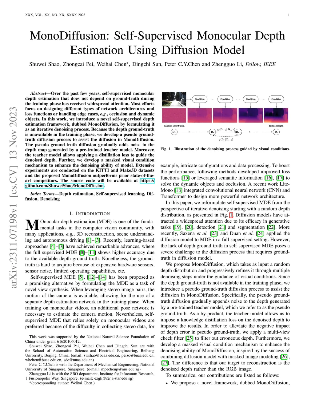 MonoDiffusion: Self-Supervised Monocular Depth Estimation Using