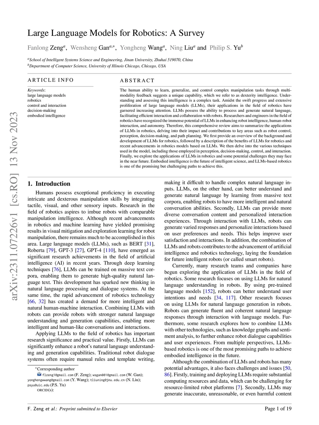 Large Language Models for Robotics: A Survey
