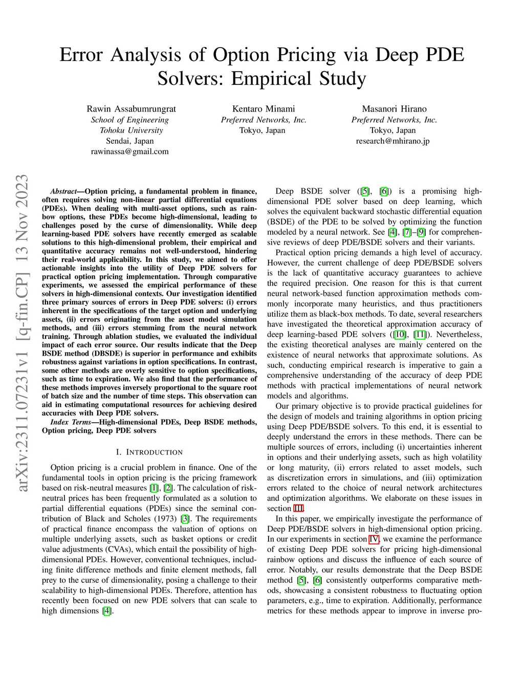 Option pricing, a fundamental problem in finance, often requires solving non-linear partial differential equations (PDEs). When dealing with multi-asset options, such as rainbow options, these PDEs become high-dimensional, leading to challenges posed by the curse of dimensionality. While deep learning-based PDE solvers have recently emerged as scalable solutions to this high-dimensional problem, their empirical and quantitative accuracy remains not well-understood, hindering their real-world applicability. In this study, we aimed to offer actionable insights into the utility of Deep PDE solvers for practical option pricing implementation. Through comparative experiments, we assessed the empirical performance of these solvers in high-dimensional contexts. Our investigation identified three primary sources of errors in Deep PDE solvers: (i) errors inherent in the specifications of the target option and underlying assets, (ii) errors originating from the asset model simulation methods, and (iii) errors stemming from the neural network training. Through ablation studies, we evaluated the individual impact of each error source. Our results indicate that the Deep BSDE method (DBSDE) is superior in performance and exhibits robustness against variations in option specifications. In contrast, some other methods are overly sensitive to option specifications, such as time to expiration. We also find that the performance of these methods improves inversely proportional to the square root of batch size and the number of time steps. This observation can aid in estimating computational resources for achieving desired accuracies with Deep PDE solvers.