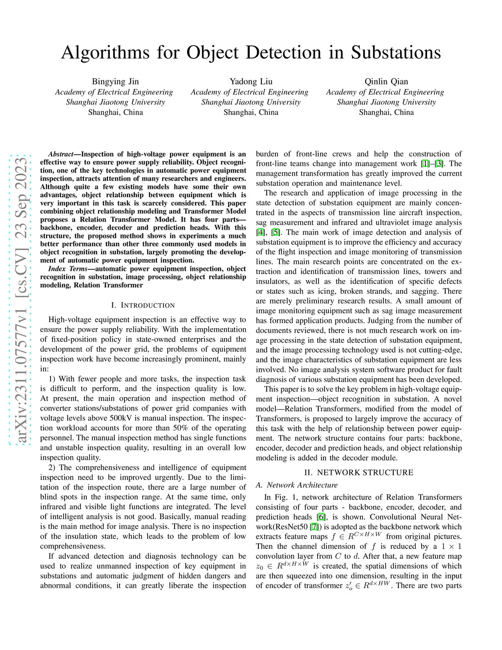 Algorithms for Object Detection in Substations