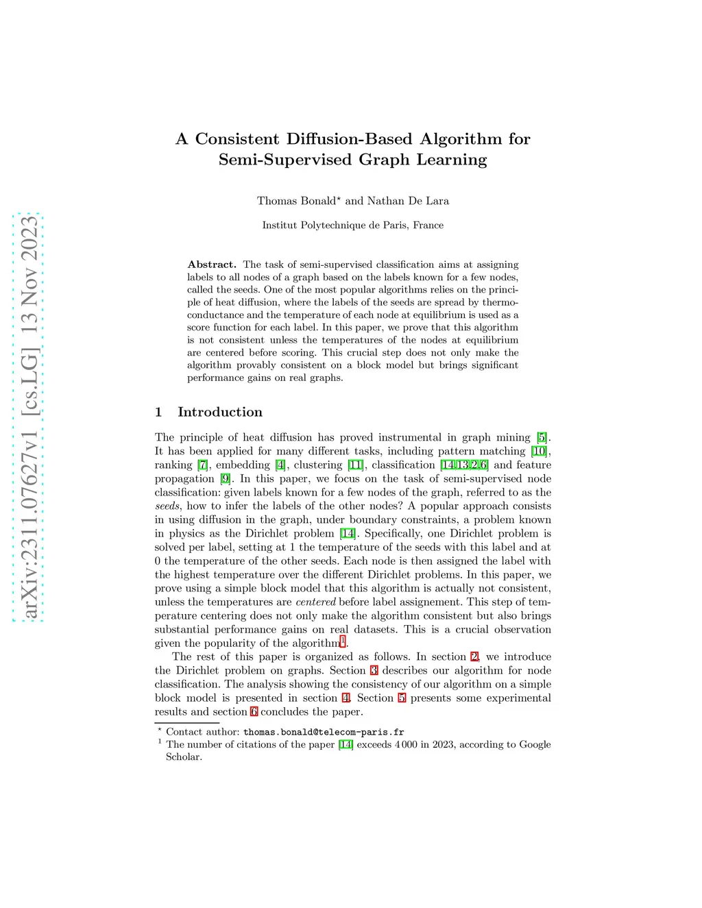 A Consistent Diffusion-Based Algorithm for Semi-Supervised Graph