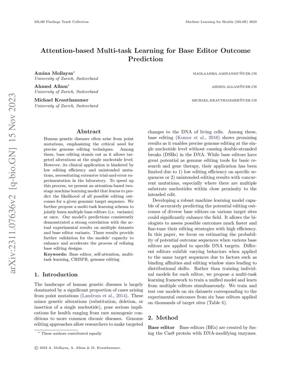 Attention-based Multi-task Learning for Base Editor Outcome Prediction