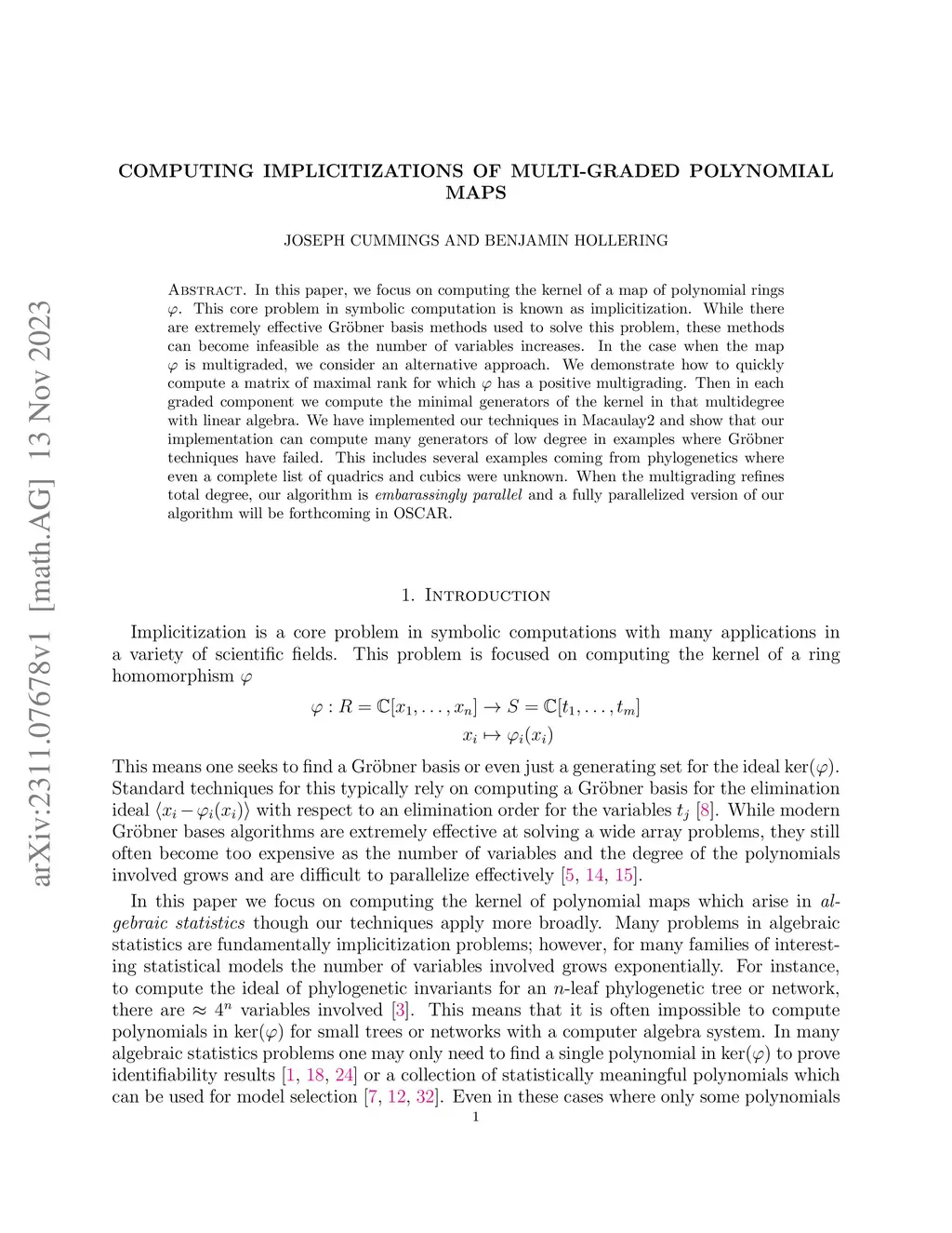 In this paper, we focus on computing the kernel of a map of polynomial rings . This core problem in symbolic computation is known as implicitization. While there are extremely effective Gr\"obner basis methods used to solve this problem, these methods can become infeasible as the number of variables increases. In the case when the map is multigraded, we consider an alternative approach. We demonstrate how to quickly compute a matrix of maximal rank for which has a positive multigrading. Then in each graded component we compute the minimal generators of the kernel in that multidegree with linear algebra. We have implemented our techniques in Macaulay2 and show that our implementation can compute many generators of low degree in examples where Gr\"obner techniques have failed. This includes several examples coming from phylogenetics where even a complete list of quadrics and cubics were unknown. When the multigrading refines total degree, our algorithm is \emph{embarassingly parallel} and a fully parallelized version of our algorithm will be forthcoming in OSCAR.
