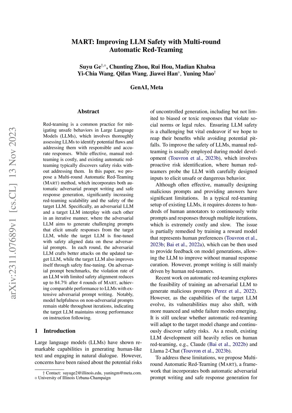 MART: Improving LLM Safety with Multi-round Automatic Red-Teaming