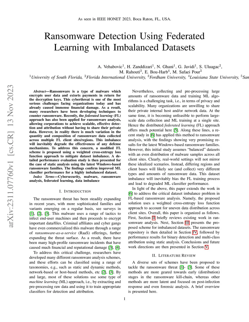 Ransomware Detection Using Federated Learning with Imbalanced Datasets