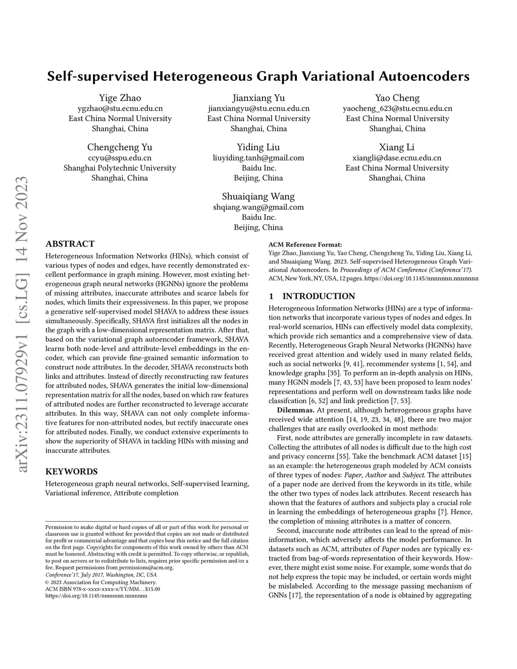 Self-supervised Heterogeneous Graph Variational Autoencoders