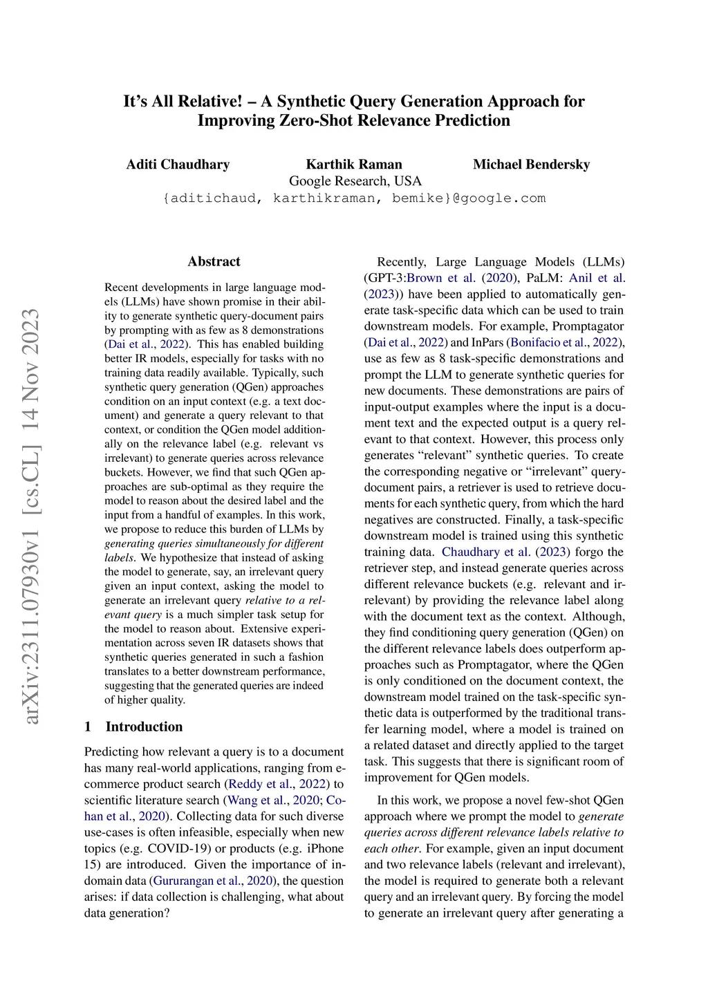 It's All Relative! -- A Synthetic Query Generation Approach for
