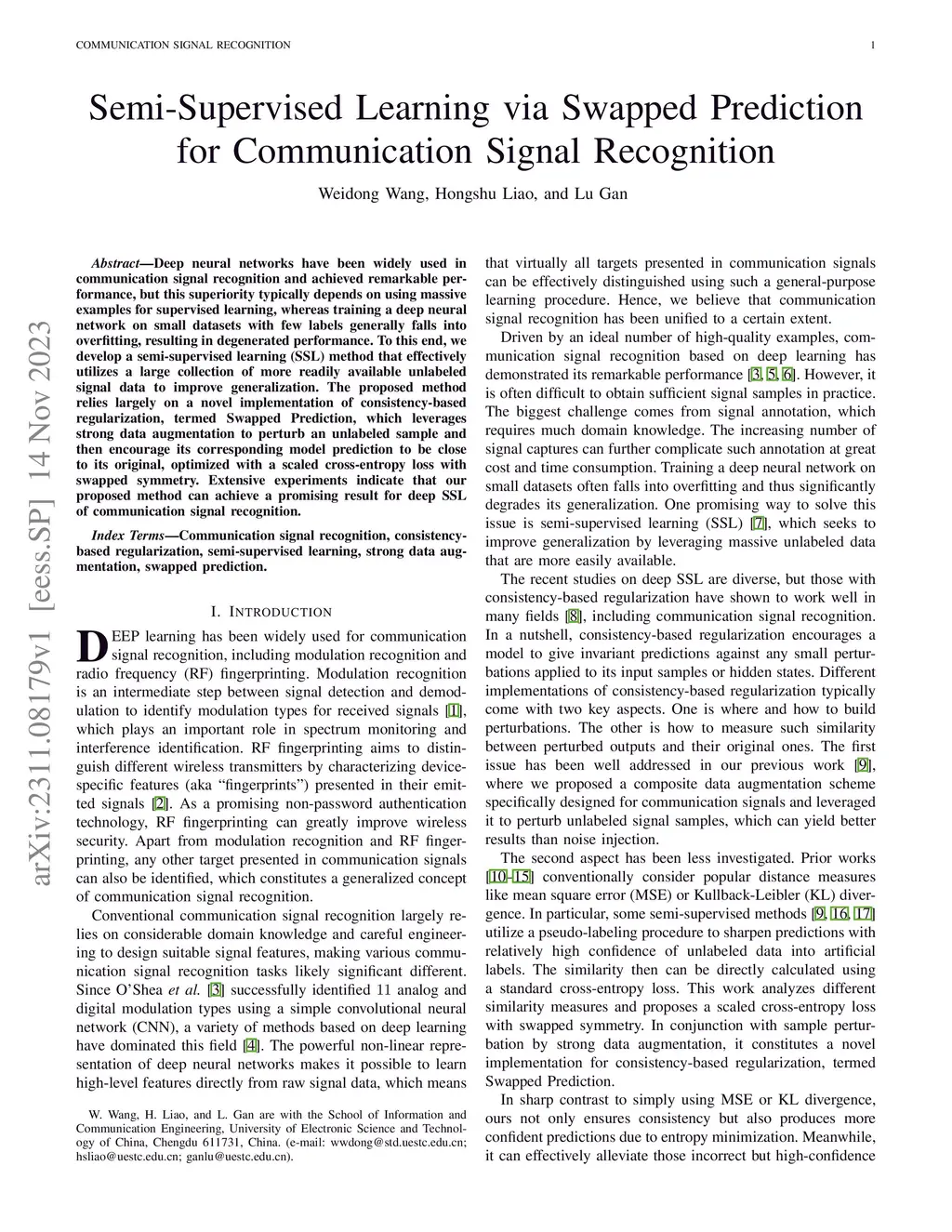 Semi-Supervised Learning via Swapped Prediction for Communication Signal