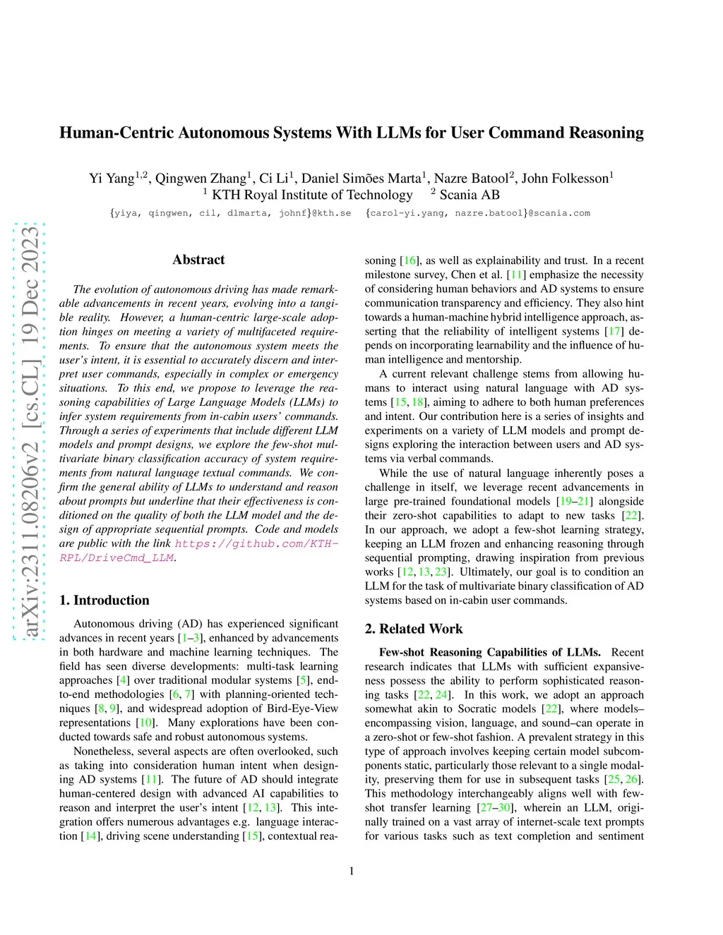 Human-Centric Autonomous Systems With LLMs for User Command Reasoning