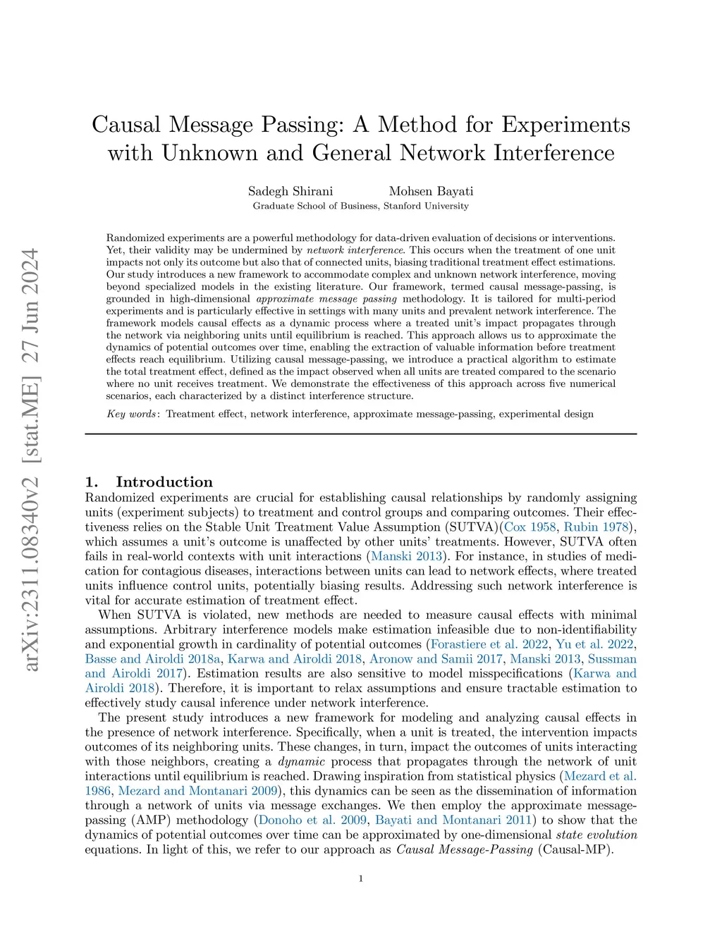 Causal Message Passing: A Method for Experiments with Unknown and