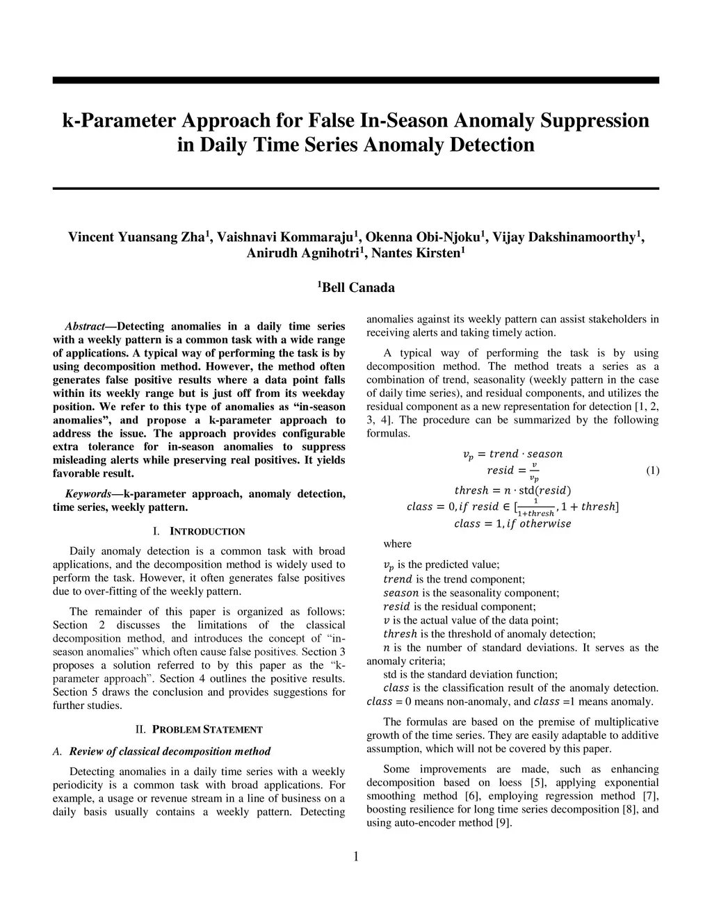 Detecting anomalies in a daily time series with a weekly pattern is a common task with a wide range of applications. A typical way of performing the task is by using decomposition method. However, the method often generates false positive results where a data point falls within its weekly range but is just off from its weekday position. We refer to this type of anomalies as "in-season anomalies", and propose a k-parameter approach to address the issue. The approach provides configurable extra tolerance for in-season anomalies to suppress misleading alerts while preserving real positives. It yields favorable result.