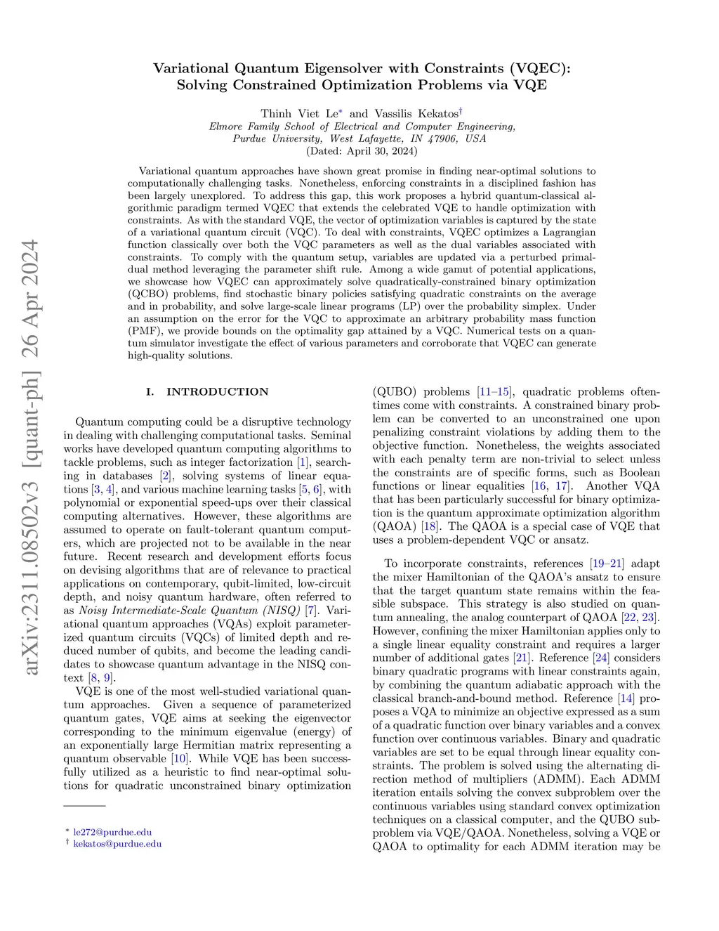 Variational Quantum Eigensolver with Constraints (VQEC): Solving