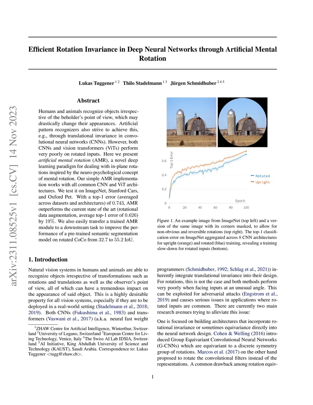 Humans and animals recognize objects irrespective of the beholder's point of view, which may drastically change their appearances. Artificial pattern recognizers also strive to achieve this, e.g., through translational invariance in convolutional neural networks (CNNs). However, both CNNs and vision transformers (ViTs) perform very poorly on rotated inputs. Here we present artificial mental rotation (AMR), a novel deep learning paradigm for dealing with in-plane rotations inspired by the neuro-psychological concept of mental rotation. Our simple AMR implementation works with all common CNN and ViT architectures. We test it on ImageNet, Stanford Cars, and Oxford Pet. With a top-1 error (averaged across datasets and architectures) of , AMR outperforms the current state of the art (rotational data augmentation, average top-1 error of ) by . We also easily transfer a trained AMR module to a downstream task to improve the performance of a pre-trained semantic segmentation model on rotated CoCo from to IoU.