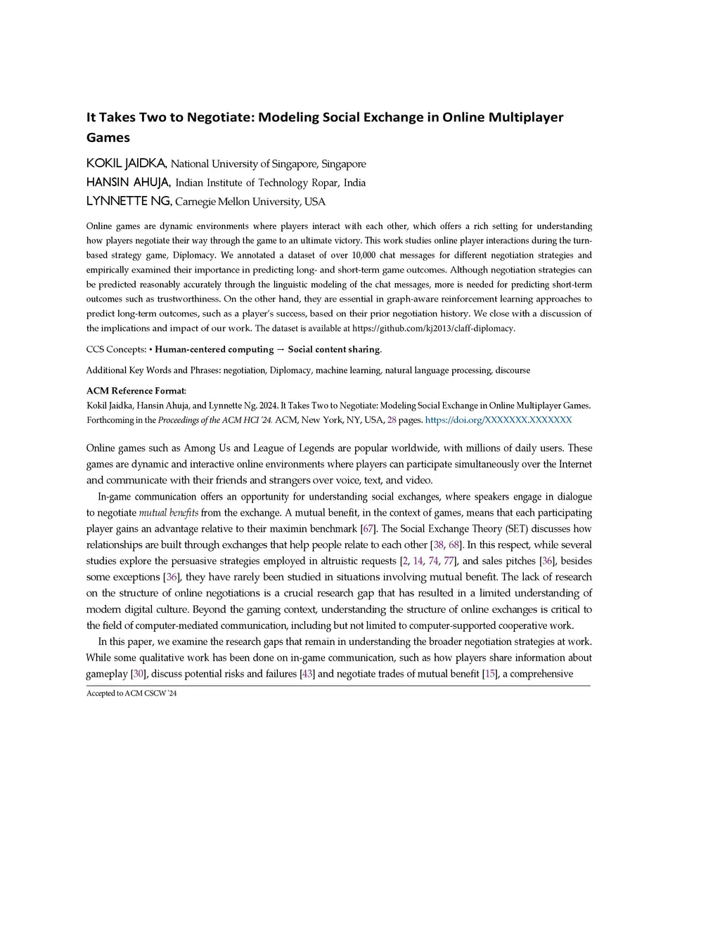 It Takes Two to Negotiate: Modeling Social Exchange in Online