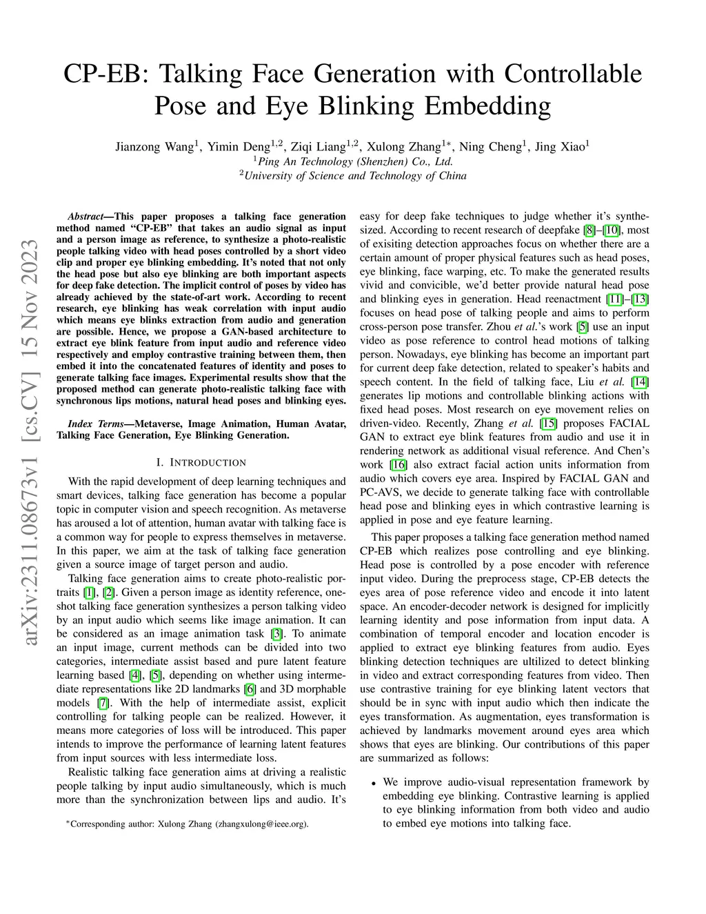 CP-EB: Talking Face Generation with Controllable Pose and Eye Blinking
