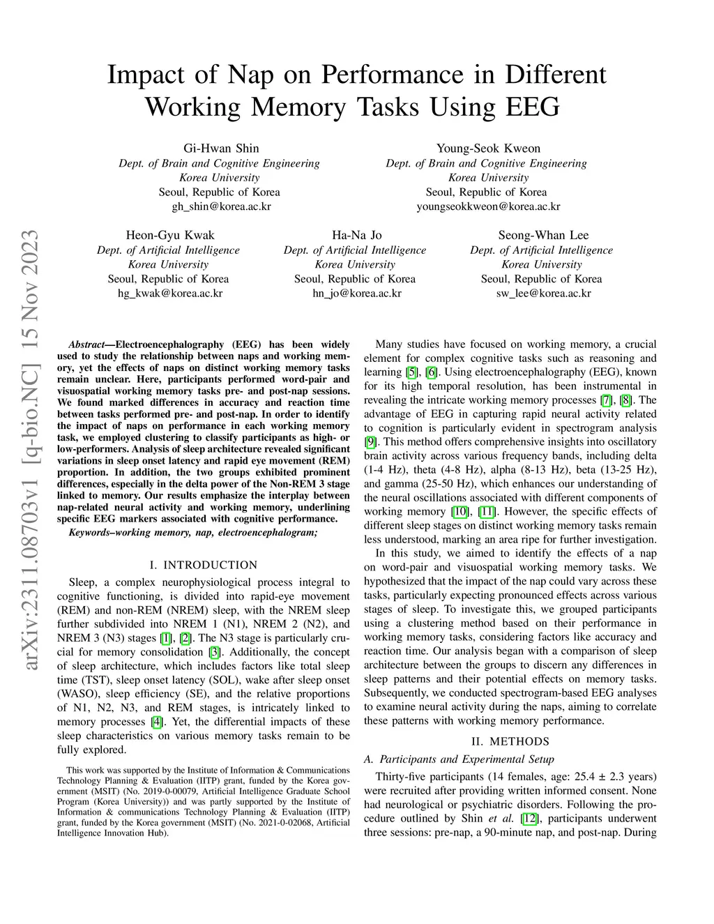 Impact of Nap on Performance in Different Working Memory Tasks Using EEG