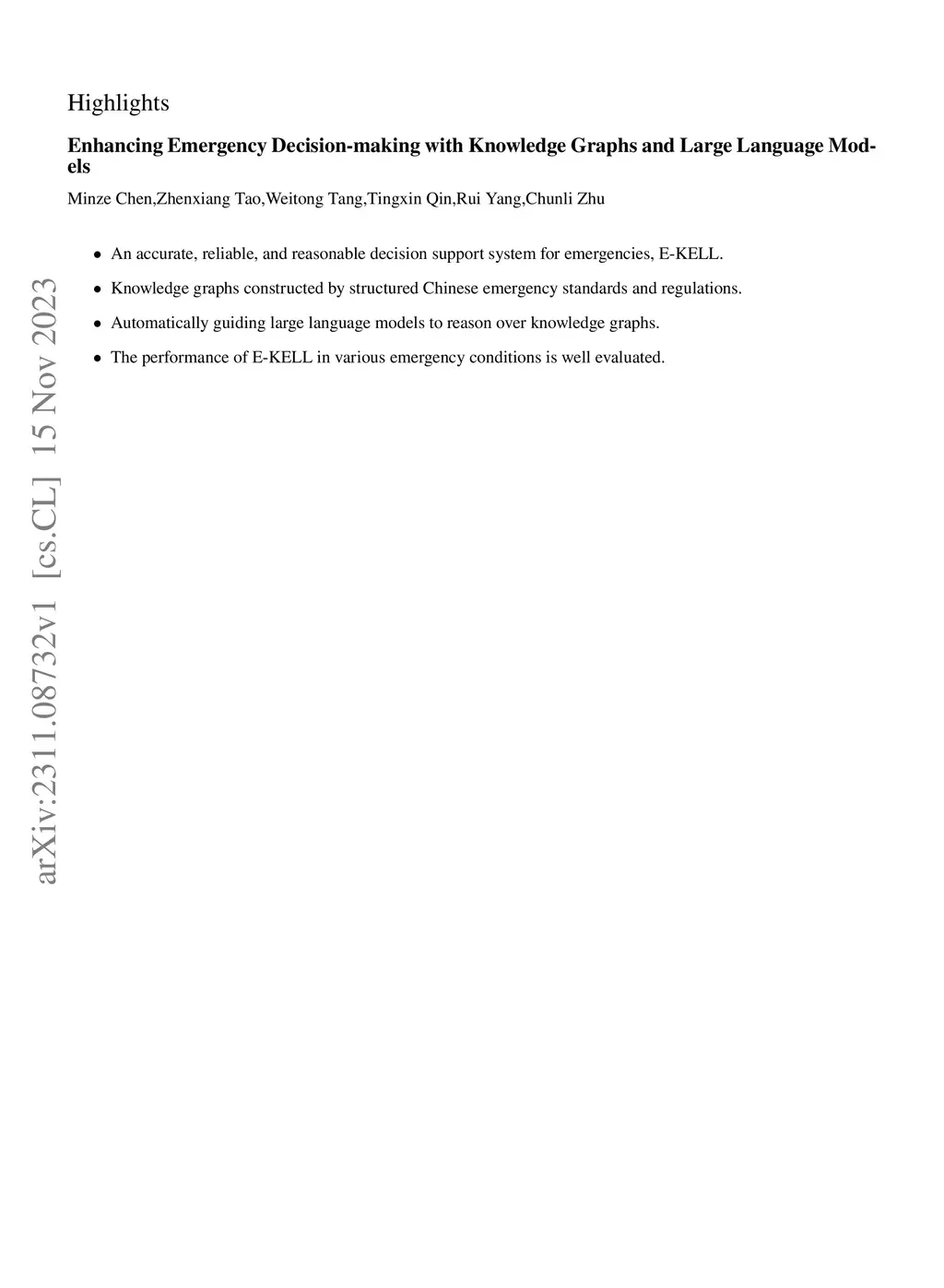 Enhancing Emergency Decision-making with Knowledge Graphs and Large