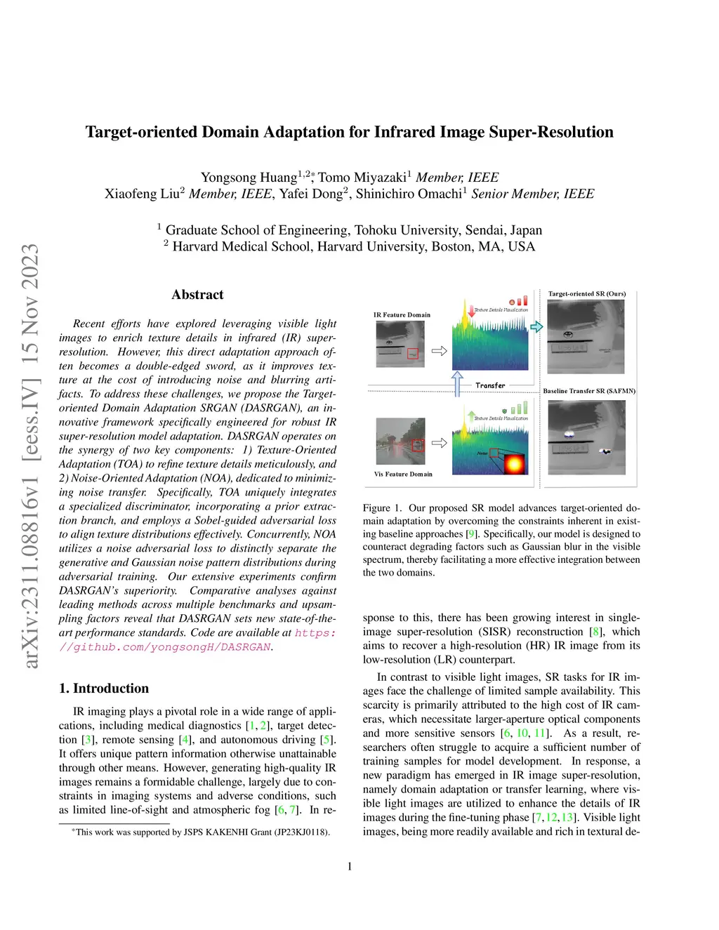 Recent efforts have explored leveraging visible light images to enrich texture details in infrared (IR) super-resolution. However, this direct adaptation approach often becomes a double-edged sword, as it improves texture at the cost of introducing noise and blurring artifacts. To address these challenges, we propose the Target-oriented Domain Adaptation SRGAN (DASRGAN), an innovative framework specifically engineered for robust IR super-resolution model adaptation. DASRGAN operates on the synergy of two key components: 1) Texture-Oriented Adaptation (TOA) to refine texture details meticulously, and 2) Noise-Oriented Adaptation (NOA), dedicated to minimizing noise transfer. Specifically, TOA uniquely integrates a specialized discriminator, incorporating a prior extraction branch, and employs a Sobel-guided adversarial loss to align texture distributions effectively. Concurrently, NOA utilizes a noise adversarial loss to distinctly separate the generative and Gaussian noise pattern distributions during adversarial training. Our extensive experiments confirm DASRGAN's superiority. Comparative analyses against leading methods across multiple benchmarks and upsampling factors reveal that DASRGAN sets new state-of-the-art performance standards. Code are available at \url{this https URL}.