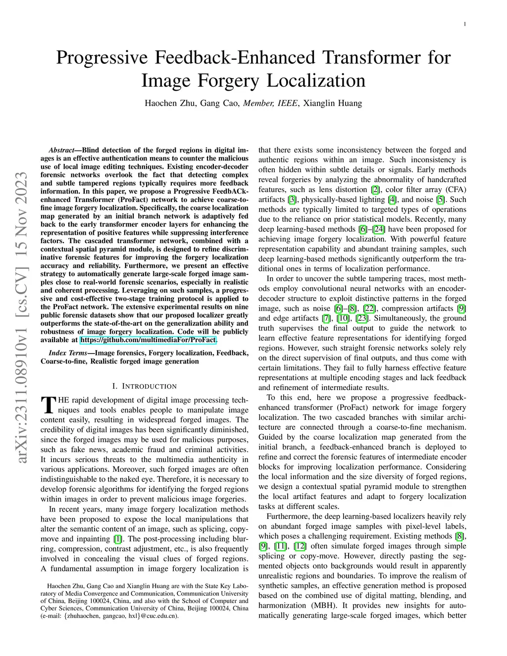 Progressive Feedback-Enhanced Transformer for Image Forgery Localization
